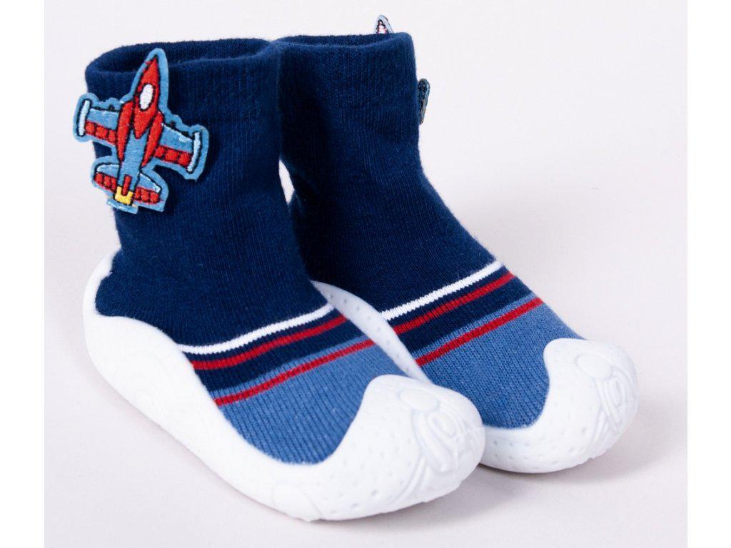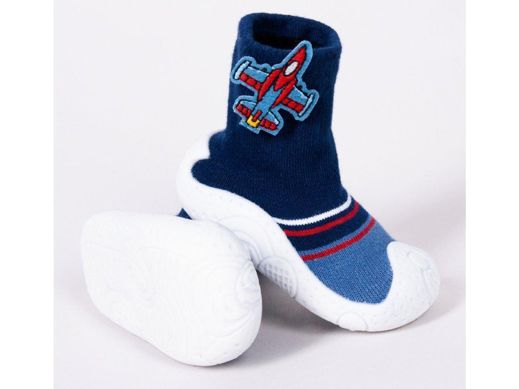 Modré protiskluzové ponožky s gumovou podrážkou - stíhačka