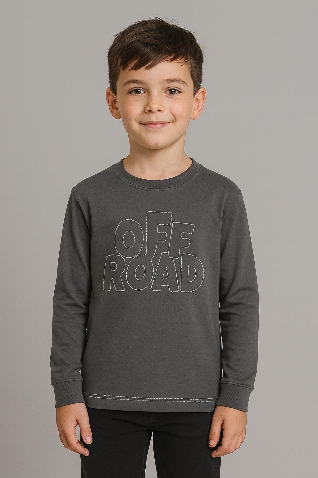 Stylové chlapecké tričko s dlouhým rukávem v tmavě šedé barvě s nápisem OFF ROAD potěší každého malého řidiče i průzkumníka. Pohodlný střih a měkký materiál zajistí komfort po celý den.
